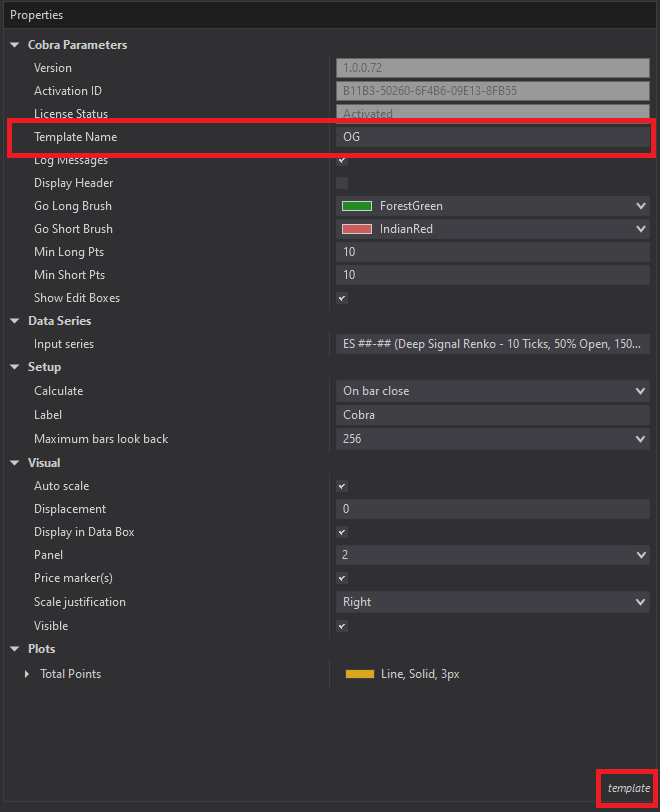 There are currently two different templates the user can select from that changes the underlying point system of Cobra. More will be added a later time, but please try each one to see how it looks on your chart.