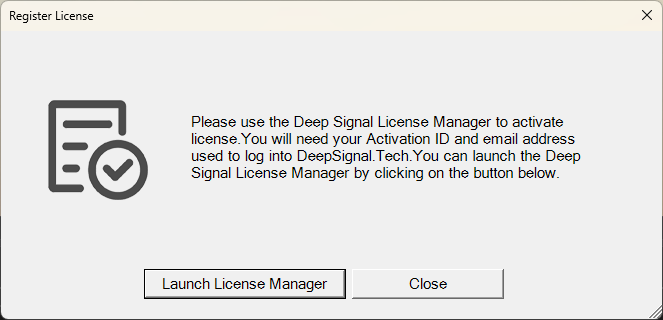 Please click on Launch License Manager. You will get the Deep Signal License Manager.