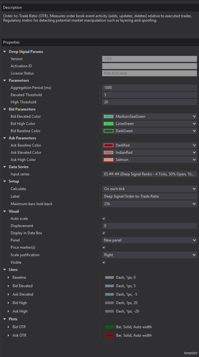 Deep Signal Order-to-Trade Ratio (OTR) – Parameters