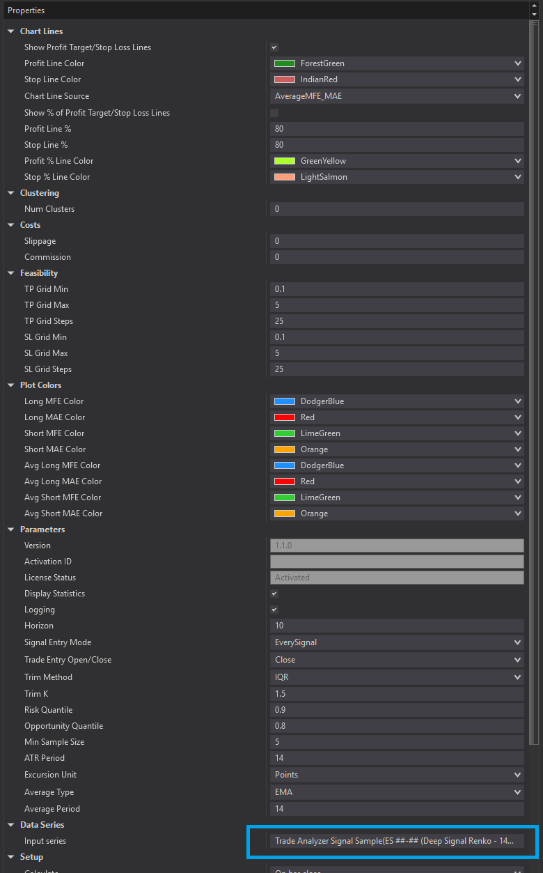 In the Trade Analyzer Properties dialog, we need to change the Input series towards the bottom of the page.