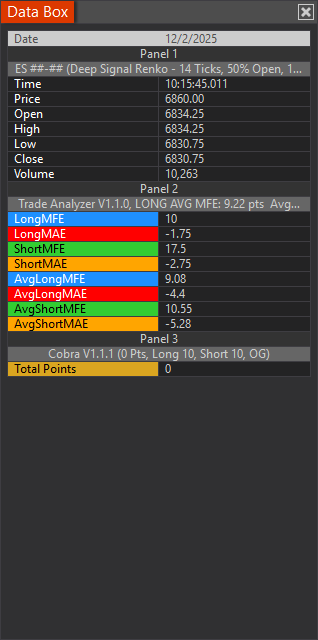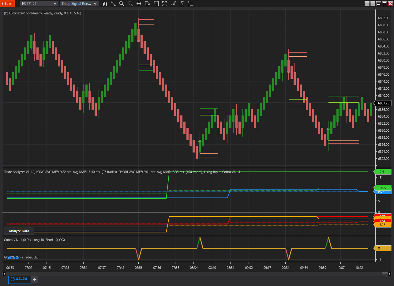 Deep Signal Trade Analyzer turns your historical trades into a clear statistical blueprint for smarter decision-making. It is a comprehensive MFE/MAE (Maximum Favorable Excursion / Maximum Adverse Excursion) trade geometry analysis indicator for NinjaTrader 8. It analyzes trading signal performance by measuring how far price moves in your favor (MFE) and against you (MAE) after trade entries. It finds optimal profit targets, and risk frontiers so you can see where your true edge lives. Instead of guessing entries and exits, you trade with data-driven confidence built from your own performance.