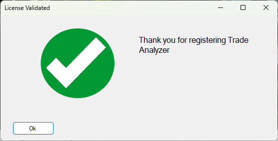 Once the license is activated you should get a License Validated dialog and you can use Cobra as an indicator in a chart.